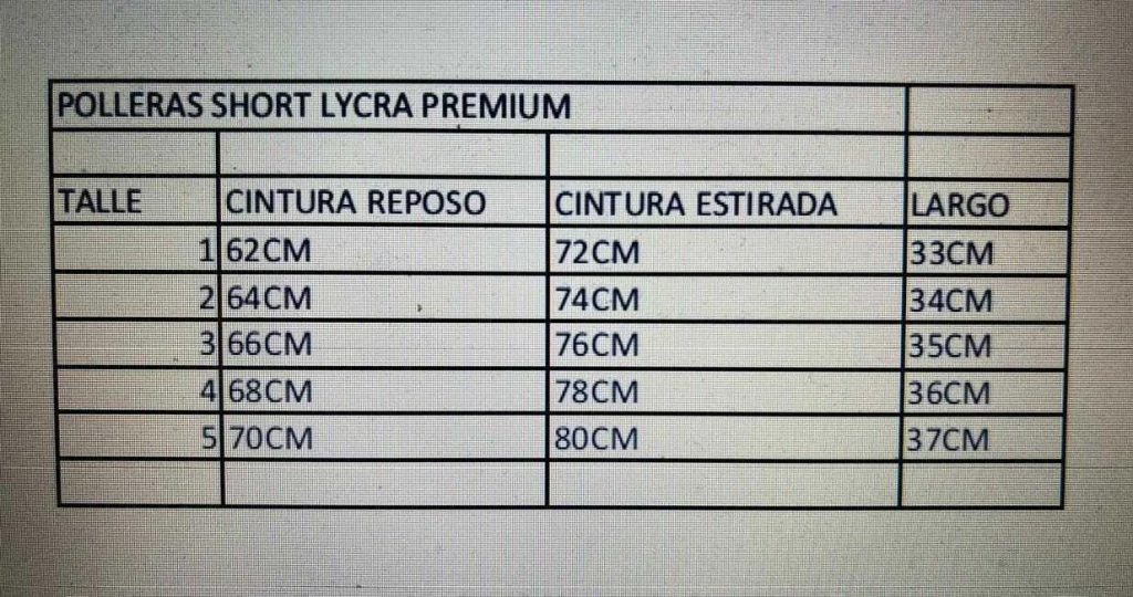 Pollera short en lycra premium
